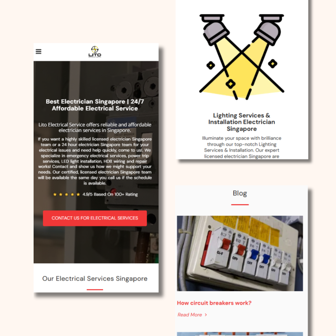 To address Lito Electrical Service’s challenges and drive meaningful organic traffic, I began with a full website redesign to ensure the site was not only visually appealing but also optimized for both user experience and search engine performance.