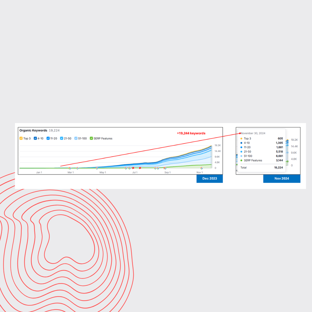 Reached an impressive growth of over 19,244 keywords and securing multiple prime positions in Google Snippets over 3,144 keywords.